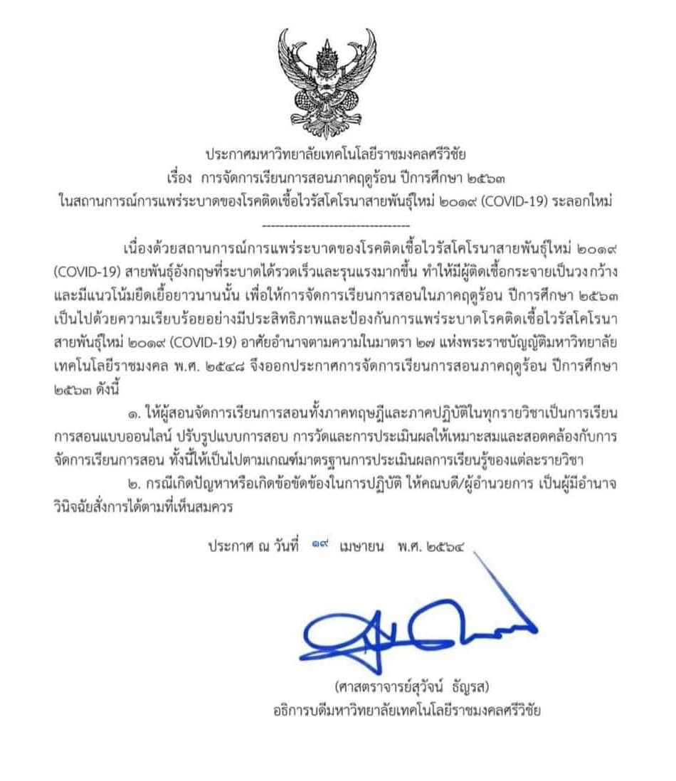ประกาศมหาวิทยาลัยเทคโนโลยีราชมงคลศรีวิชัย