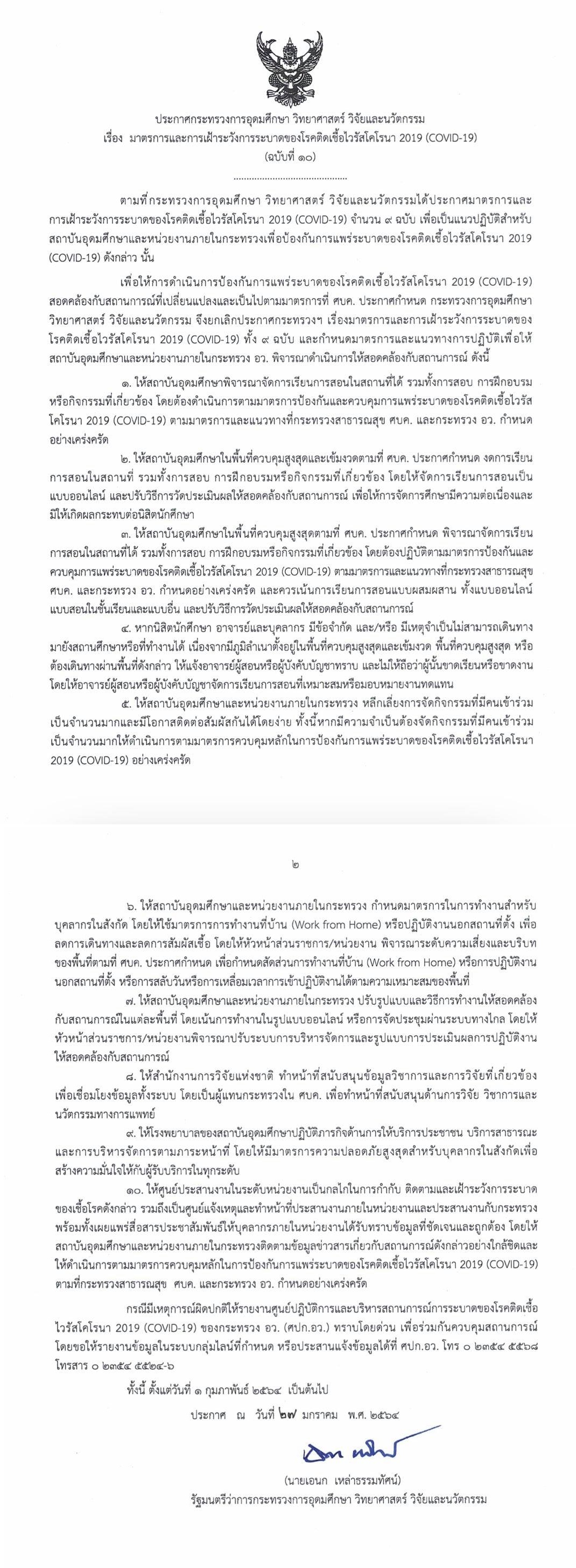 เรื่อง มาตรการและการเฝ้าระวังการระบาดของโรคติดเชื้อไวรัสโคโรนา 2019 (COVID-19) (ฉบับที่ 10)
